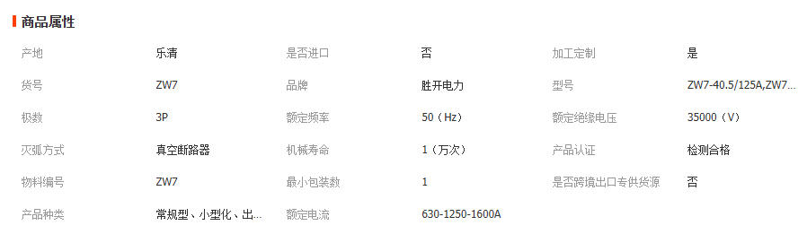 35KV真空断路器ZW7-40.5/1250-1600A户外柱上高压开关电站型ZW39 1台