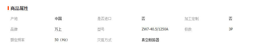 ZW7-40.5/1250A 1600A 2000A六氟化硫隔离开关35KV柱上真空断路器 1台