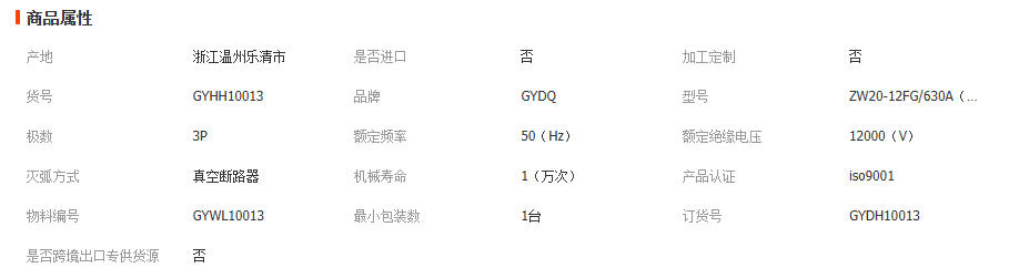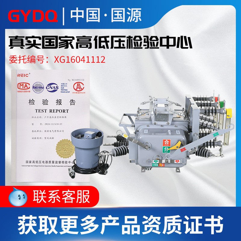 国源高压真空断路器ZW20-12FG/630A智能隔离10KV户外零序柱上开关 1台
