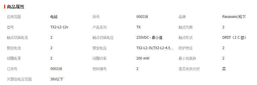 全新原装Panasonic/松下电磁继电器TX2-L2-3V 4.5V 5V 12V 10脚2A 1PCS