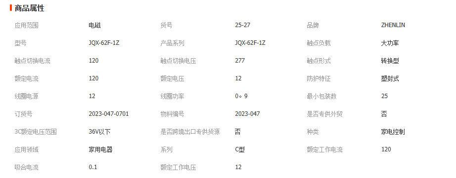JQX-62F大功率一组转换型继电器 100个